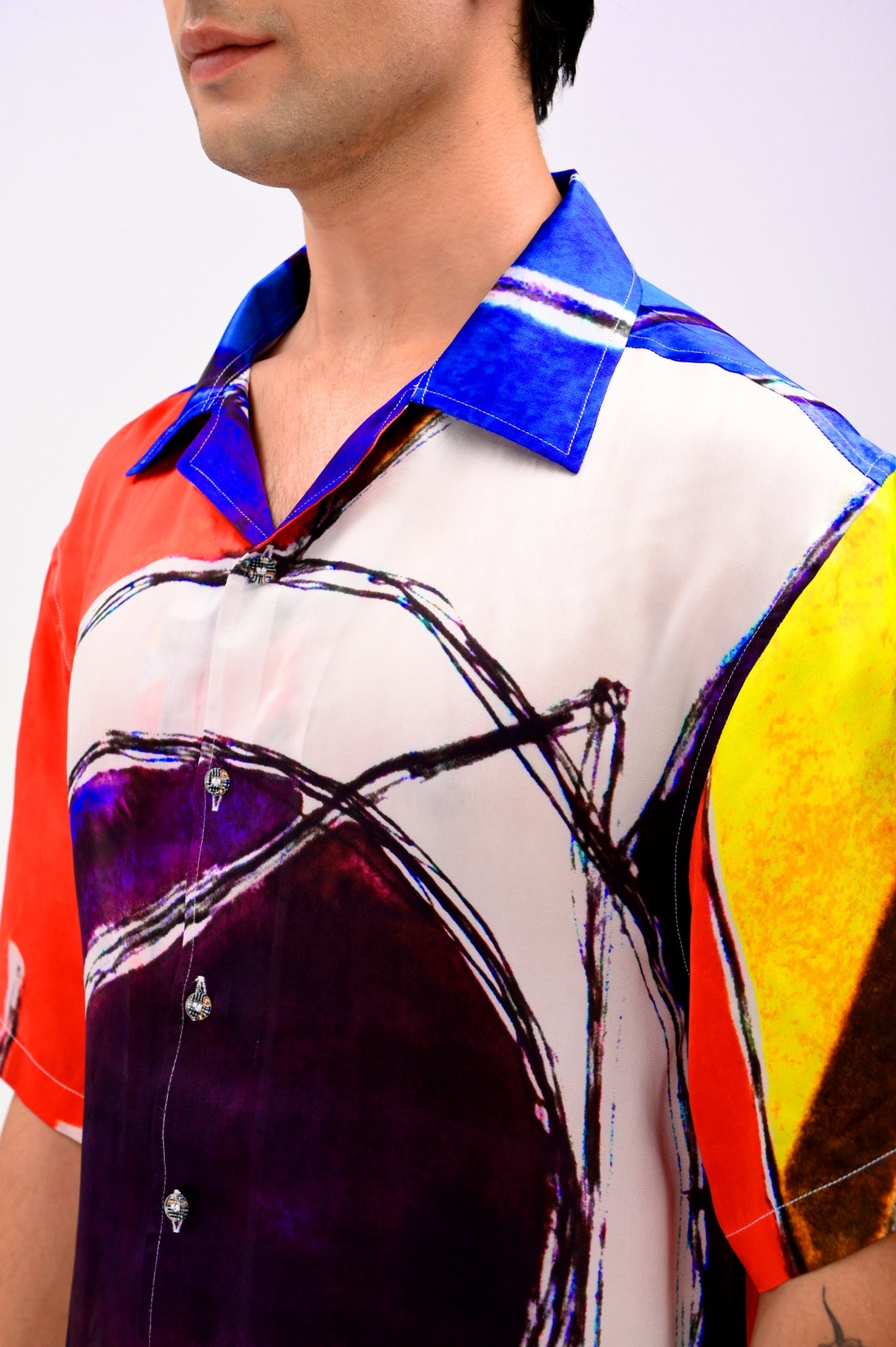 Crafted in fluid Georgette Satin, this piece wraps you in a second skin of cosmic tension — smooth, weightless, yet grounding. It’s not just a shirt. It’s a becoming.